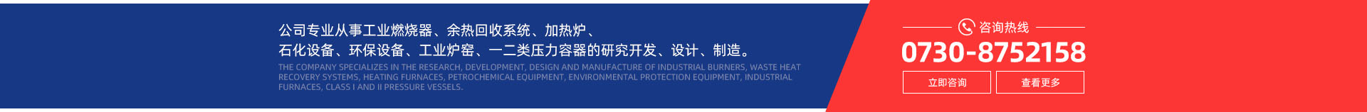 公司專業(yè)從事工業(yè)燃燒器及其智能化控制系統、余熱回收系統、加熱爐及各類爐配件、石化設備及配件、環(huán)保設備、工業(yè)爐窯及其輔助設備配件、一二類壓力容器的研究開發(fā)、設計、制造。
